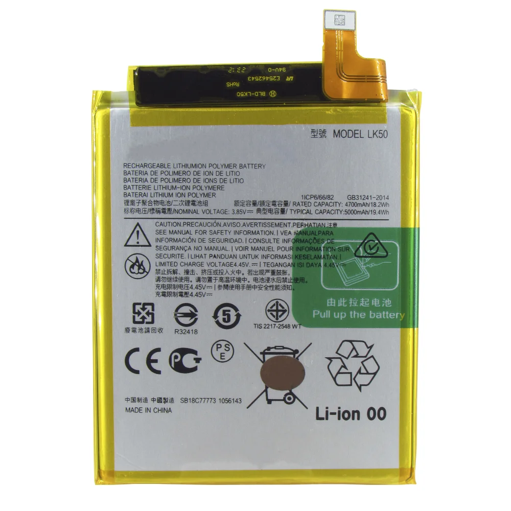 - aplicação: moto g60s xt-2133 - modelo: lk50 - voltagem: 3,8v - tensão de carga limitada: 4,4v - capacidade: 5000 mah - dimensões: 64,8 x 83,3 x 3,9 mm 49g