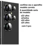 -referente a unidade de cada modelo,A quantidade varia do modelo do celular, com 2 lentes vão 2 películas , com 3 lentes vão 3 películas, e com 5 lentes vão 5 películas, sendo uma para cada lente.n- Protetor de lente da câmera com alta durabilidade e facilidade de aplicação;n- Kit películas de câmera, sendo uma para cada lente;n- Aro em alumínio resistente a riscos;n- Lindo e moderno;natenção:nates de compra ,confime seu o aparelho modelo correto ;nNÃO realizamos trocas de películas aplicadas/sem lacres!nEsse anúncio possui variações, portanto selecione corretamente o modelo e a cor desejada;nantes de aplicar sua película protetora, coloque-a sobre a tela do seu celular e verifique o lado correto e se a mesma está de acordo; Caso tenha duvidas para realiza a aplicação da película , por favor, leve a uma loja especializada, para que a aplicação seja feita por um profissional da área. Nossas imagens são meramente ilustrativas , não vendemos celulares, sendo assim, nossos anúncios se tratam apenas dos acessórios para o aparelho podendo variar na tonalidade. Não nos responsabilizamos por eventuais danos ao visor do aparelho em quedas e impactos. As Imagens meramente ilustrativas.