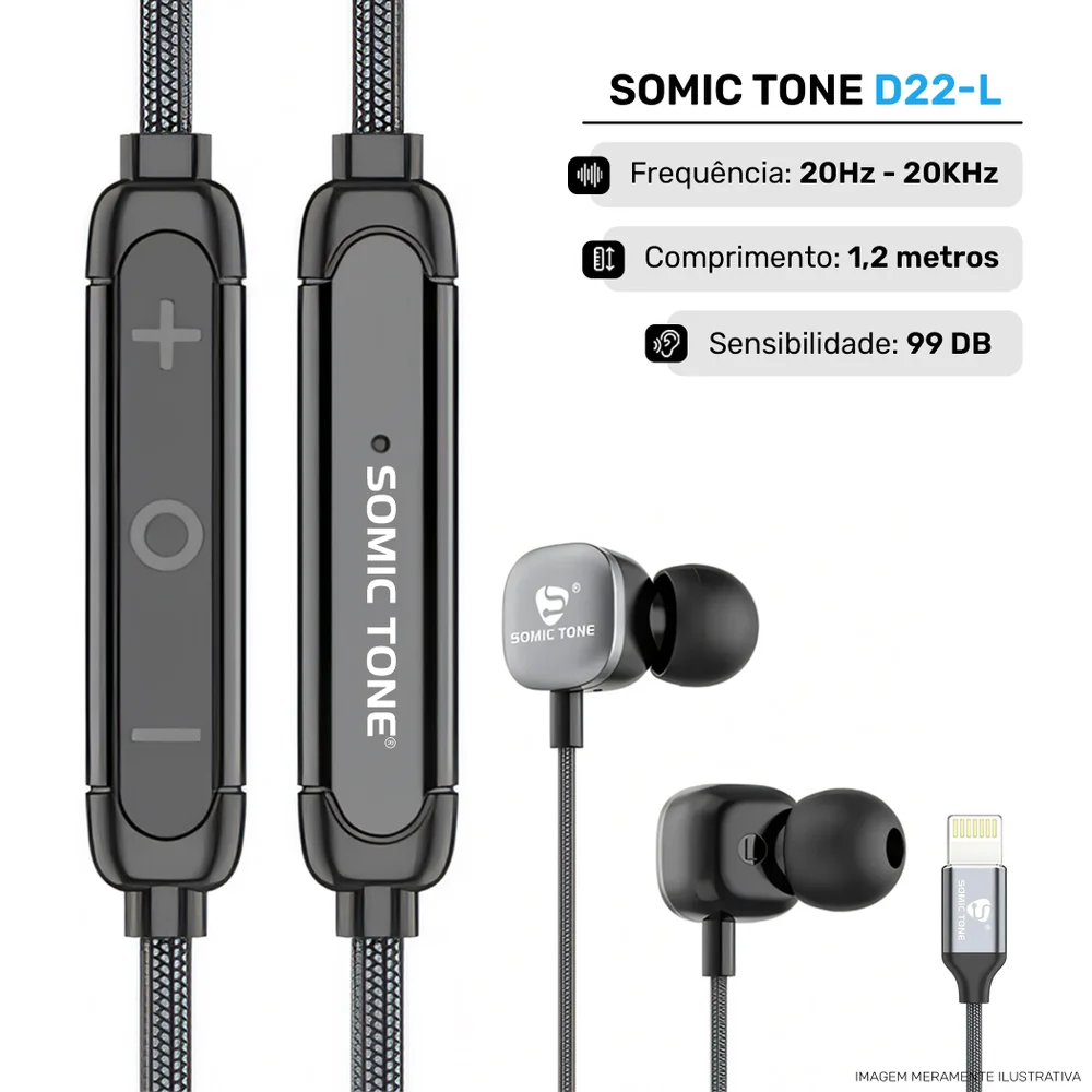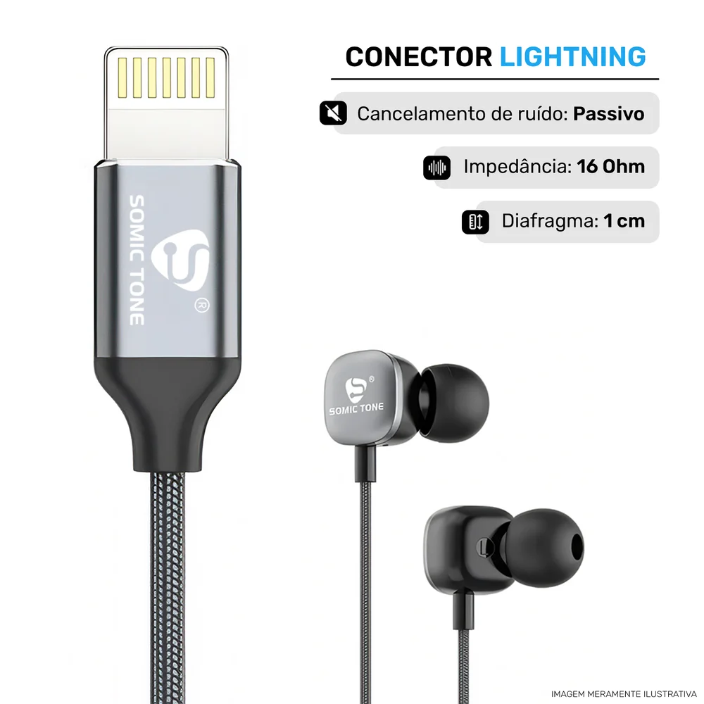 Fone de Ouvido Lightning Somic Tone para iPhone – Super Bass e Som Cristalino
