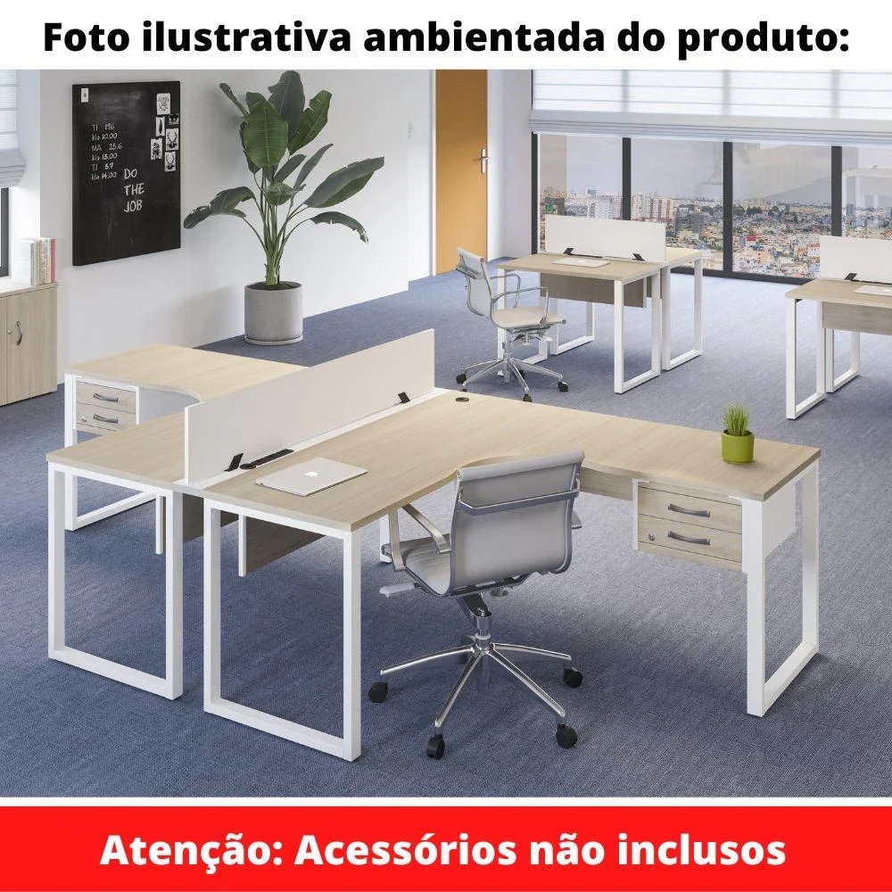 Mesa L Escritório Pe25 Nogueira Casablanca Base Branca