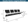 Longarina Estofada 4 Lugares Montreal Ordesign 215cm(larg) Pu Preto Aço Cromado Pintura Cinza Braços