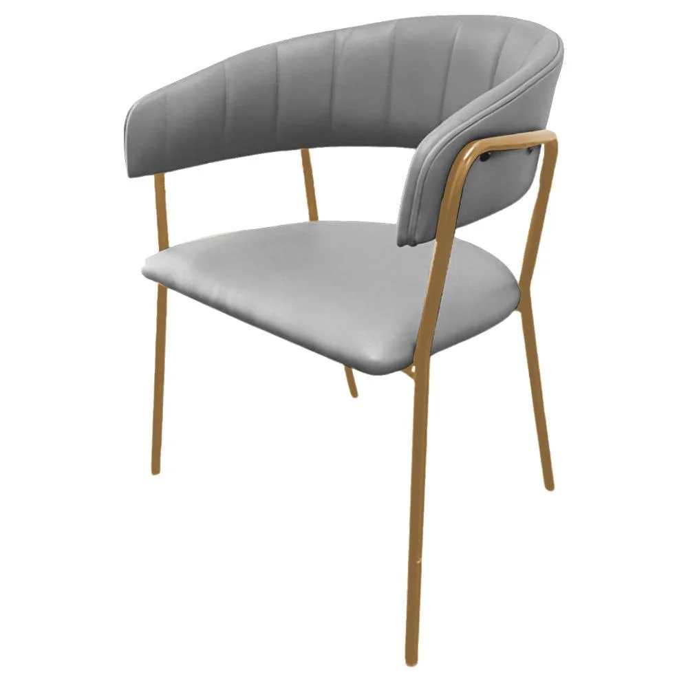 Cadeira Braços Psg Móveis Couro Legitimo Bege Base Aço