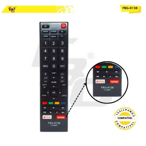 Controle Remoto Compatível Com Smart Tv Toshiba - Modelo Fbg- 9138