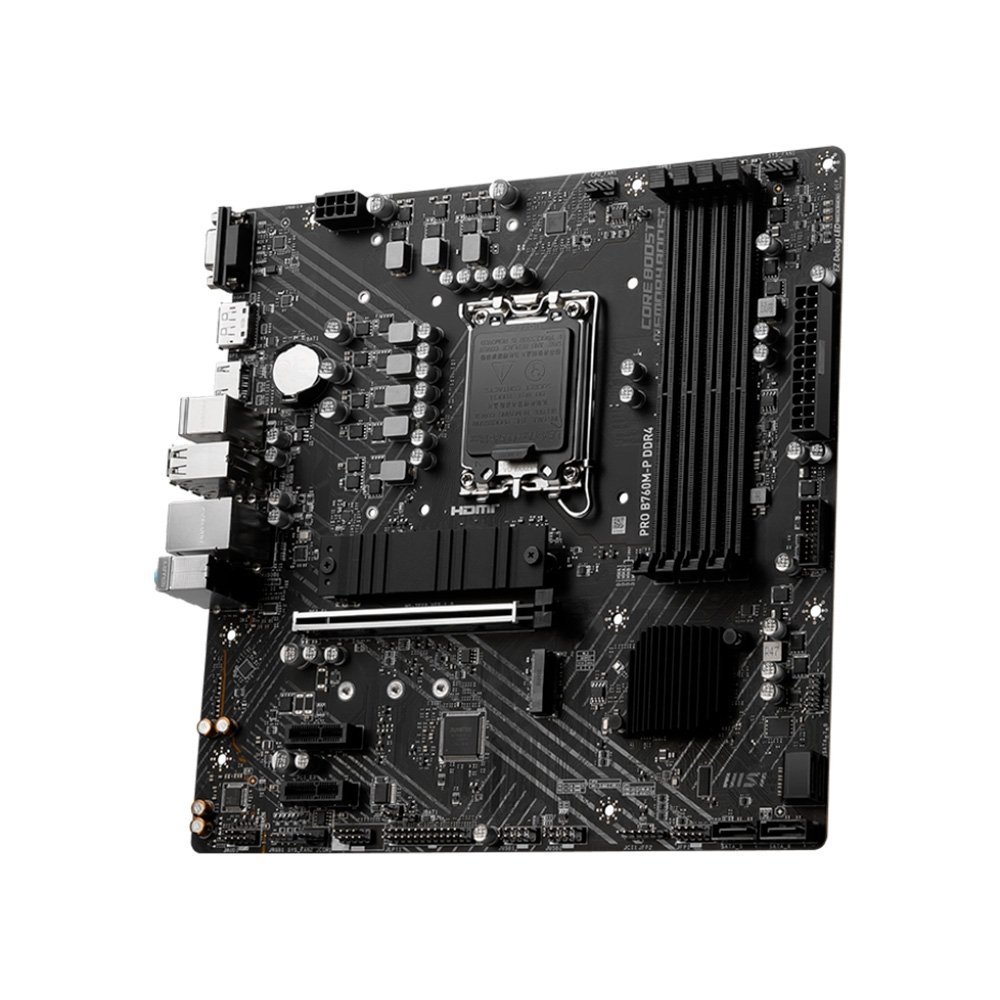 A Placa-Mãe MSI PRO B760M-P DDR4 é a escolha ideal para quem busca uma base sólida e confiável para seu computador. Projetada para extrair o máximo de potencial dos processadores Intel Core de 12ª, 13ª e 14ª geração, esta placa-mãe oferece uma combinação de recursos avançados e estabilidade, garantindo uma experiência de uso fluida e sem interrupções, seja para trabalho, estudos ou jogos.