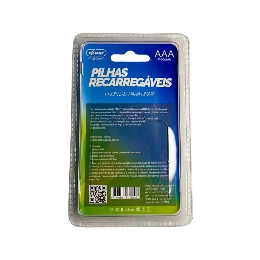 Pilha Recarregável Aaa Knup Kp-2800aaa 1100mah Blister C/2un Aaa