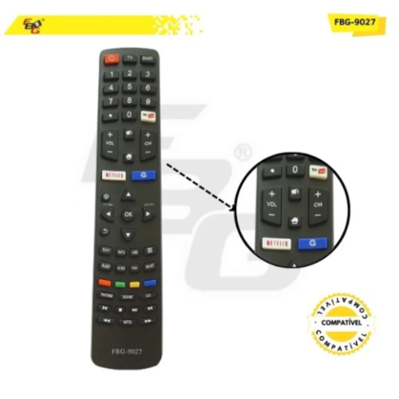 Marca: FBG Modelo: FBG-9027 Compatibilidade: Controle compatível com Tv Philco c/ Netflix e Youtube