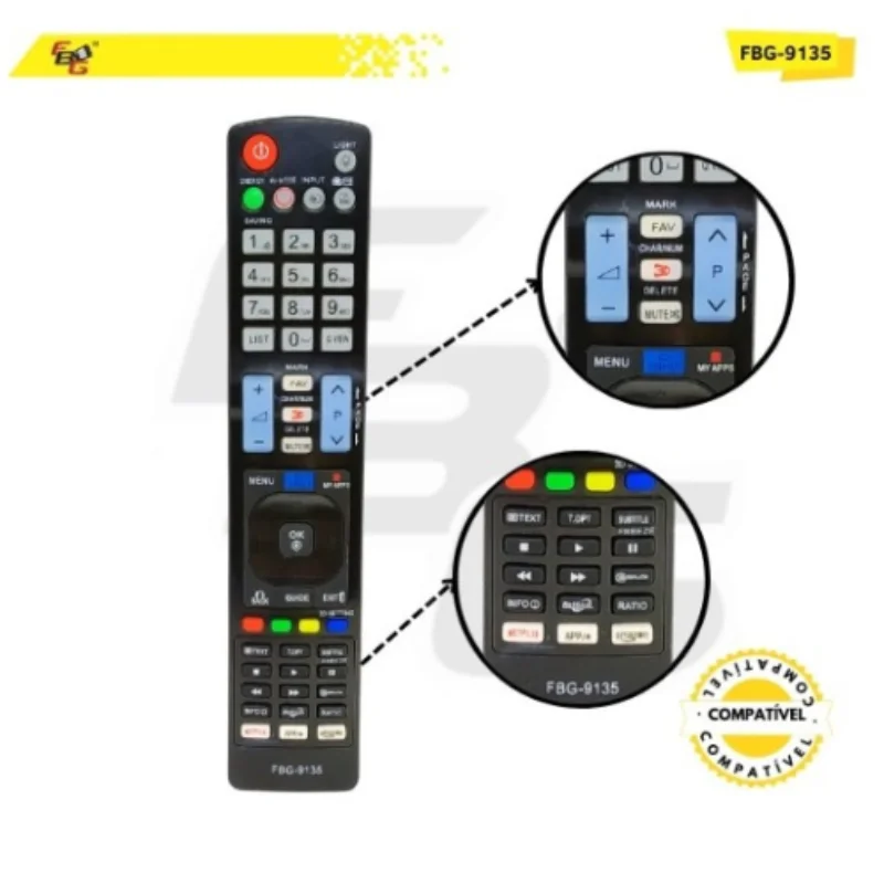 O Controle Remoto da FBG da foi projetado para oferecer praticidade, qualidade e durabilidade. Fabricado com materiais de alta qualidade, ele possui teclas macias, plástico resistente e um LED transmissor com excelente tempo de resposta, garantindo uma experiência de uso rápida e eficiente.
