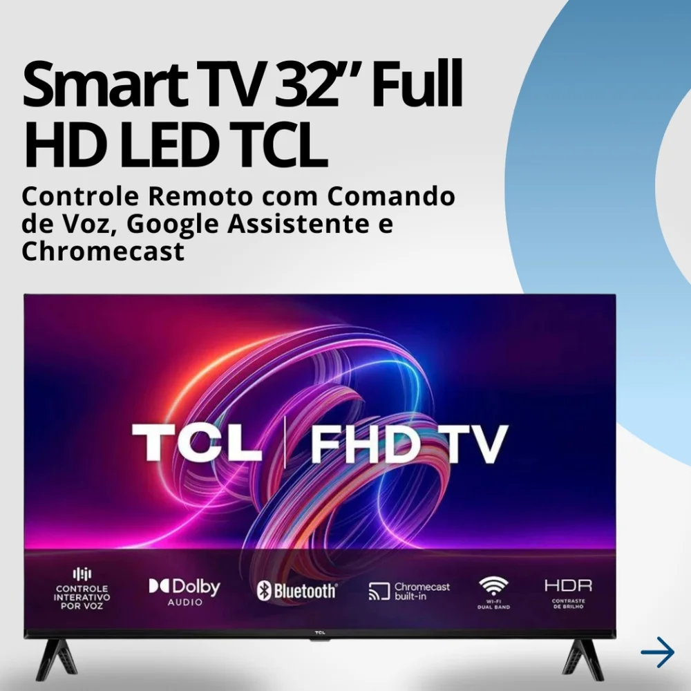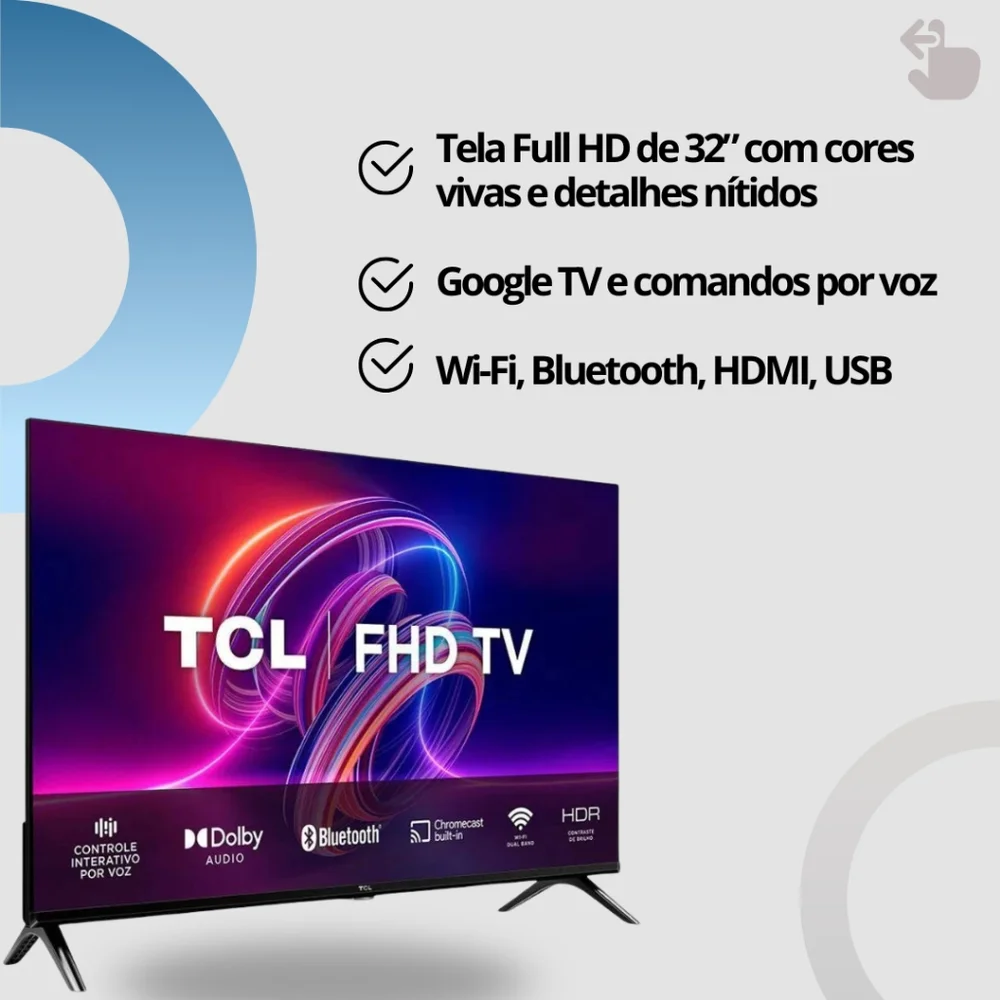 - 01 Smart TV TCL 32” Full HD LED 32S5400A Android TV Wi-Fi Bluetooth Google Assistente Chromecast