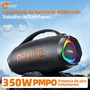 Por que escolher este modelo? • 350W de potência para um som imersivo • Iluminação RGB dinâmica que acompanha a música • Conexão TWS: pareie duas unidades para som estéreo mais potente • Resistência IPX6 contra respingos d’água e chuvas leves • Bateria de 48000mAh com até 10 horas de uso contínuo • Conectividade Bluetooth 5.3 estável e rápida • Entradas USB, cartão SD e auxiliar para diferentes usos • Função power bank para carregar seus dispositivos • Equalizador integrado para ajustar a qualidade do áudio ao seu gosto