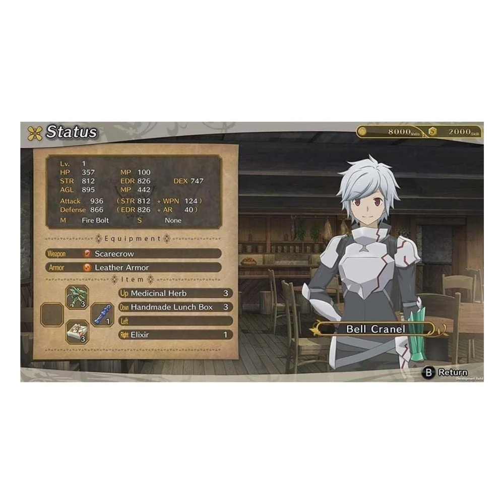 Baseado no anime DanMachi, este jogo de ação e aventura coloca você no papel de Bell Cranel, um jovem aventureiro que explora masmorras, enfrenta monstros e desenvolve relações com personagens icônicos como Hestia e Ais Wallenstein.