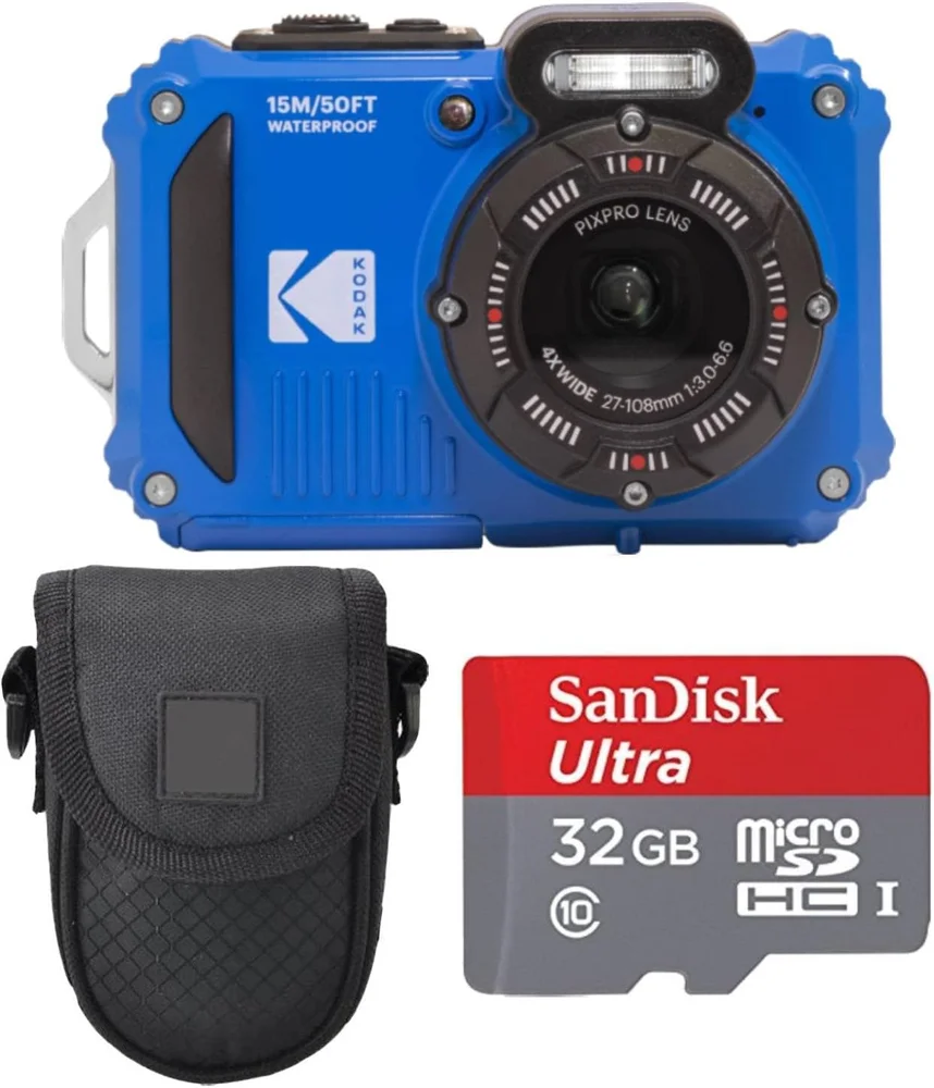 Câmera Digital Kodak Pixpro Wpz2 Azul + Estojo Preto Para Apontar E Fotografar + Cartão Microsdhc De 32gb