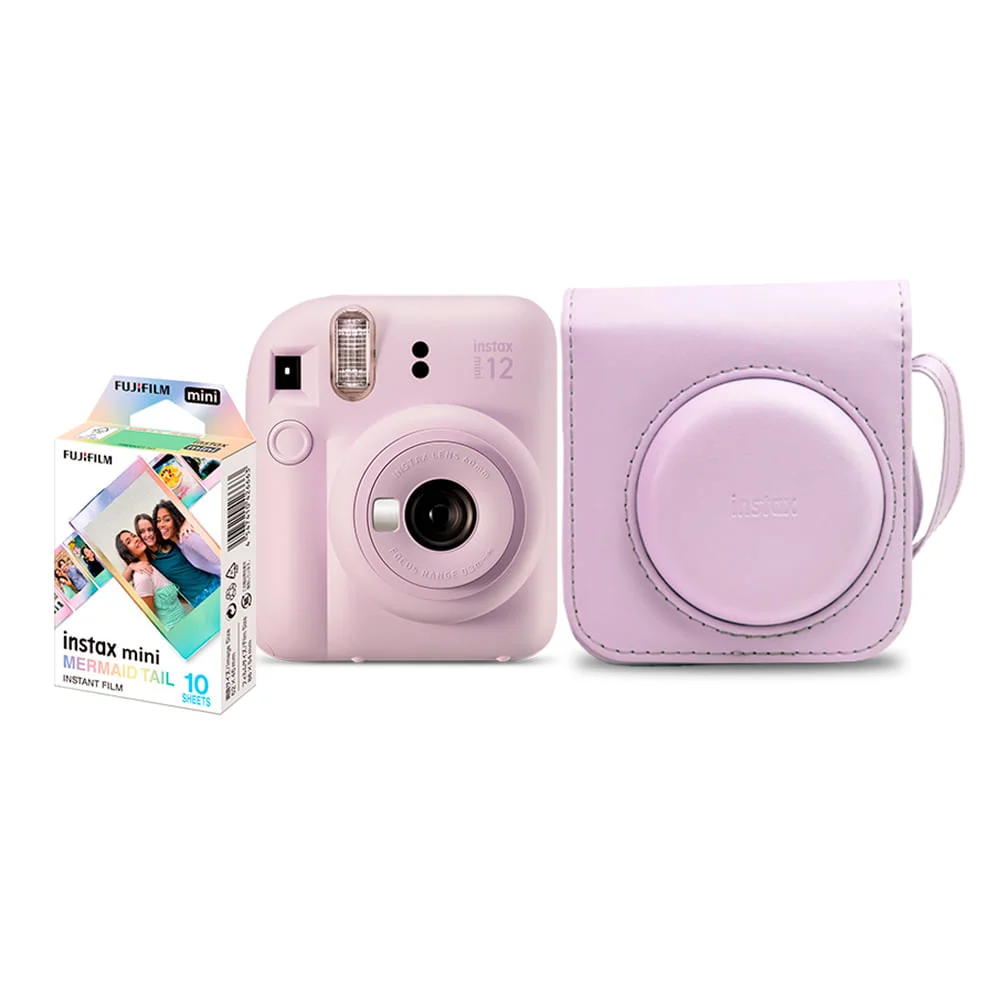 Kit Câmera Analógica Fujifilm Instax Mini 12 Lilás Mermaid Com Bolsa E Pack Com 10 Filmes - N/a