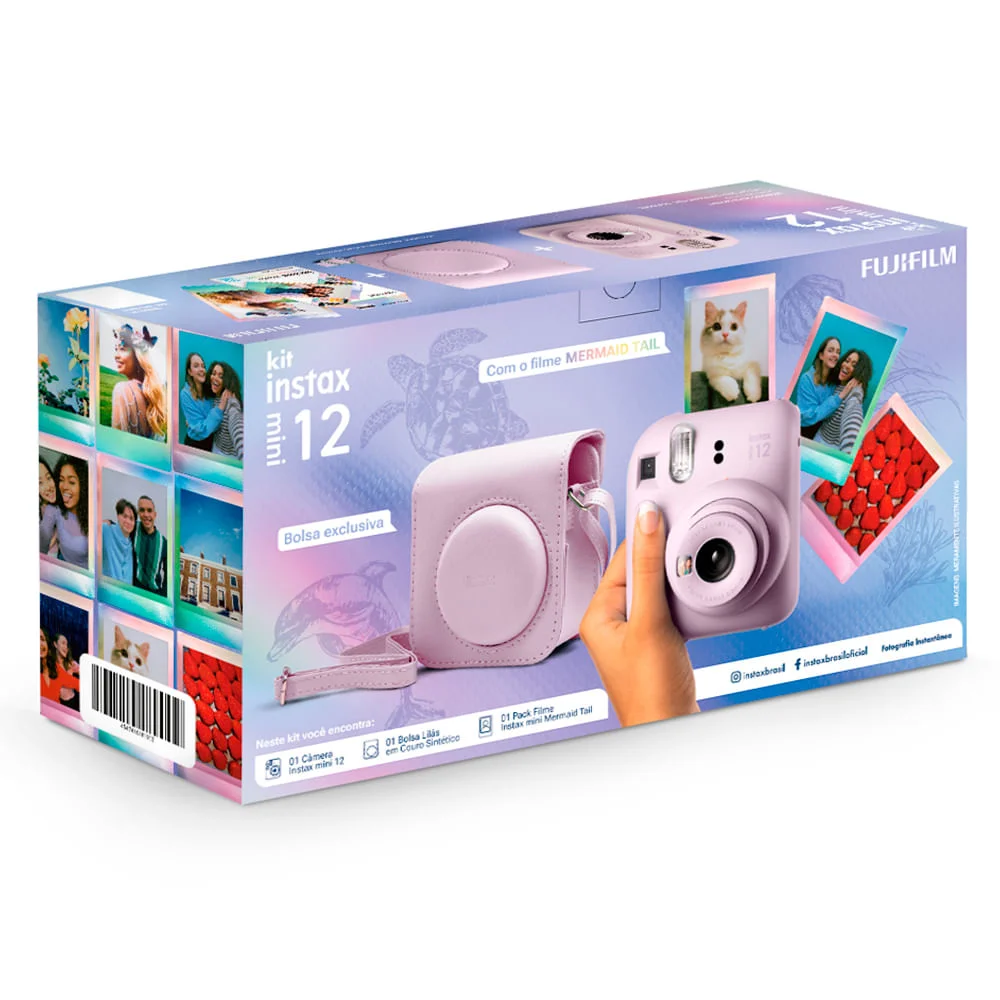 um kit perfeito para chamar de seu!alguém aí falou instax com bolsa nova? sim!este kit conta com uma câmera instax mini 12 (escolha a sua cor favorita entre as 5 disponíveis), um pack de filmes instax mini mermaid tail com 10 fotos que é perfeito para captar seus momentos e claro, um acessório perfeito uma linda bolsa combinando com a cor da sua câmera em um acabamento texturizado maravilhoso e alça ajustável. ela é modelada exclusivamente para a mini 12, encaixando perfeitamente em todos os elementos! além de proteger a sua instax mini 12, fala sério, ela é linda demais e vai arrasar na composição do seu look! já xonou nessa novidade, né? sabemos, pois a gente também!sobre a nossa queridinha instax mini 12: projetada para acompanhar a vida, a instax mini 12 está pronta para funcionar com um simples giro da lente. gire novamente e você estará no modo close-up, perfeito para selfies. combinado com o espelho de selfie perfeitamente posicionado, controle de flash automático e mini impressões alegres, a mini 12 é extraordinária para capturar momentos. mas isso não é tudo em que o modo close-up é bom. quando ativado, o visor ajustável emparelha perfeitamente com a lente, então o que você vê é o que você obtém (o termo chique para isso é correção de paralaxe). porque quando você está tão perto, não há espaço para erros. além disso, com a exposição automática, você pode simplesmente apontar e clicar. sem mexer nas configurações, apenas cliques únicos e alegres todas as vezes. e com isso em mente, sua mini impressão aparecerá em apenas cinco segundos. tudo sem comprometer a qualidade da imagem. ah, você sabia? todos os packs de filmes instax formato ”mini” (sempre terão essa palavrinha no nome) são compatíveis com a instax mini 12! já conhece todas as opções de cores? (vendidos separadamente).bolsa exclusiva para a sua mini 12: como falamos ali acima, este modelo foi desenvolvido especialmente para as câmeras instantâneas instax mini 12, ou seja, a bolsa não é compatível com outros modelos de câmeras instax. ame, viva, compartilhe.#instaxse acompanhe todas as dicas nas redes sociais oficiais da instax brasil! #instaxse e sempre tenha incríveis histórias para contar e levar por aí :) instaxbrasilcaracterísticascâmeratipo: analógicaoutros recursosmodo close-up: perfeito para selfiescontrole de flash automáticoean7892520000041corlilásespecificações técnicasmodelo: min1 12garantia: 12 mesesdimensões e pesodimensões do produto com embalagem (axlxp): 150x270x80 mmpeso do produto sem embalagem: 0,71 kgpeso do produto com embalagem: 0,80 kgitens inclusos01 câmera instax mini 1201 bolsa 01 pack com 10 filmes instax mini