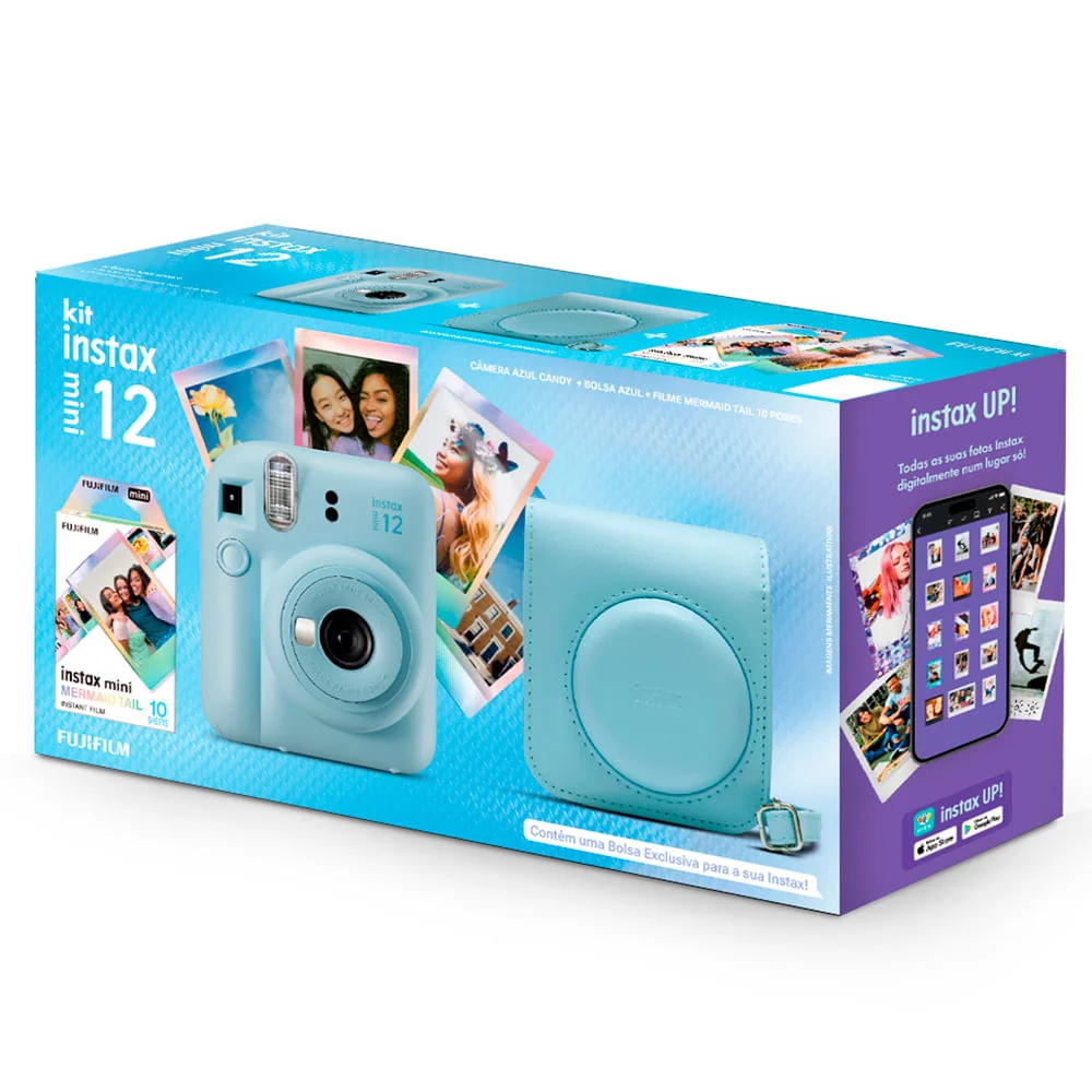 um kit perfeito para chamar de seu!alguém aí falou instax com bolsa nova? sim!este kit conta com uma câmera instax mini 12 (escolha a sua cor favorita entre as 5 disponíveis), um pack de filmes instax mini mermaid tail com 10 fotos que é perfeito para captar seus momentos e claro, um acessório perfeito uma linda bolsa combinando com a cor da sua câmera em um acabamento texturizado maravilhoso e alça ajustável. ela é modelada exclusivamente para a mini 12, encaixando perfeitamente em todos os elementos! além de proteger a sua instax mini 12, fala sério, ela é linda demais e vai arrasar na composição do seu look! já xonou nessa novidade, né? sabemos, pois a gente também!sobre a nossa queridinha instax mini 12: projetada para acompanhar a vida, a instax mini 12 está pronta para funcionar com um simples giro da lente. gire novamente e você estará no modo close-up, perfeito para selfies. combinado com o espelho de selfie perfeitamente posicionado, controle de flash automático e mini impressões alegres, a mini 12 é extraordinária para capturar momentos. mas isso não é tudo em que o modo close-up é bom. quando ativado, o visor ajustável emparelha perfeitamente com a lente, então o que você vê é o que você obtém (o termo chique para isso é correção de paralaxe). porque quando você está tão perto, não há espaço para erros. além disso, com a exposição automática, você pode simplesmente apontar e clicar. sem mexer nas configurações, apenas cliques únicos e alegres todas as vezes. e com isso em mente, sua mini impressão aparecerá em apenas cinco segundos. tudo sem comprometer a qualidade da imagem. ah, você sabia? todos os packs de filmes instax formato ”mini” (sempre terão essa palavrinha no nome) são compatíveis com a instax mini 12! já conhece todas as opções de cores? (vendidos separadamente).bolsa exclusiva para a sua mini 12: como falamos ali acima, este modelo foi desenvolvido especialmente para as câmeras instantâneas instax mini 12, ou seja, a bolsa não é compatível com outros modelos de câmeras instax. ame, viva, compartilhe.#instaxse acompanhe todas as dicas nas redes sociais oficiais da instax brasil! #instaxse e sempre tenha incríveis histórias para contar e levar por aí :) instaxbrasilcaracterísticascâmeratipo: analógicaoutros recursosmodo close-up: perfeito para selfiescontrole de flash automáticoean7898952351003corazulespecificações técnicasmodelo: min1 12garantia: 12 mesesdimensões e pesodimensões do produto com embalagem (axlxp): 150x270x80 mmpeso do produto sem embalagem: 0,71 kgpeso do produto com embalagem: 0,80 kgitens inclusos01 câmera instax mini 1201 bolsa 01 pack com 10 filmes instax mini