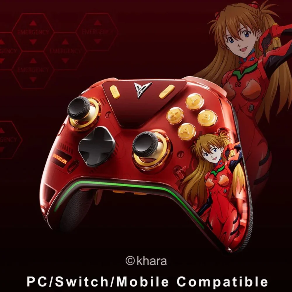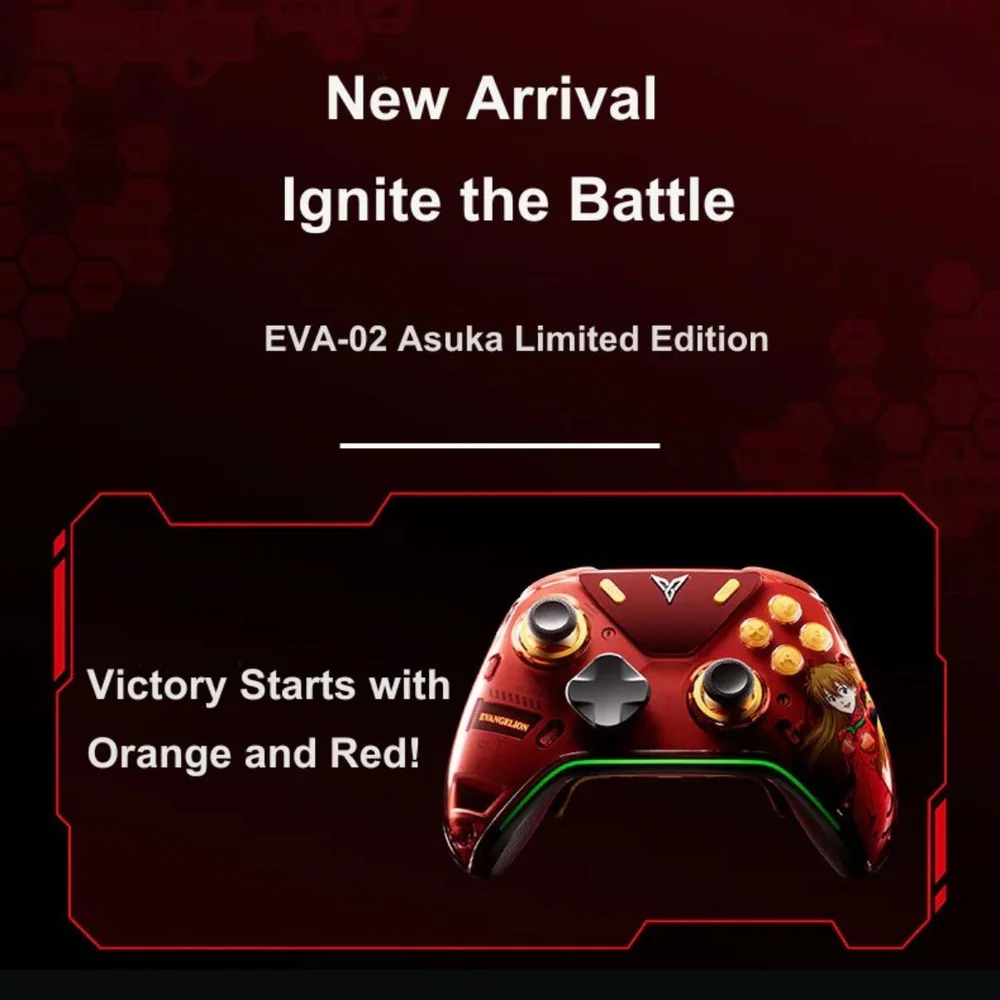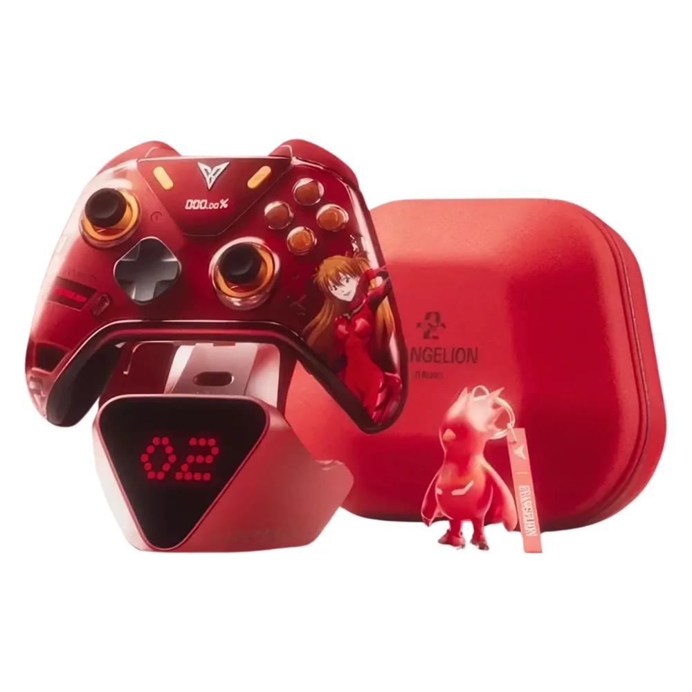 Controle Flydigi Apex 5 Evangelion Limited Edition, a versão colecionável inspirada na icônica Unidade EVA-02 pilotada por Asuka Langley Soryu de Neon Genesis Evangelion.
