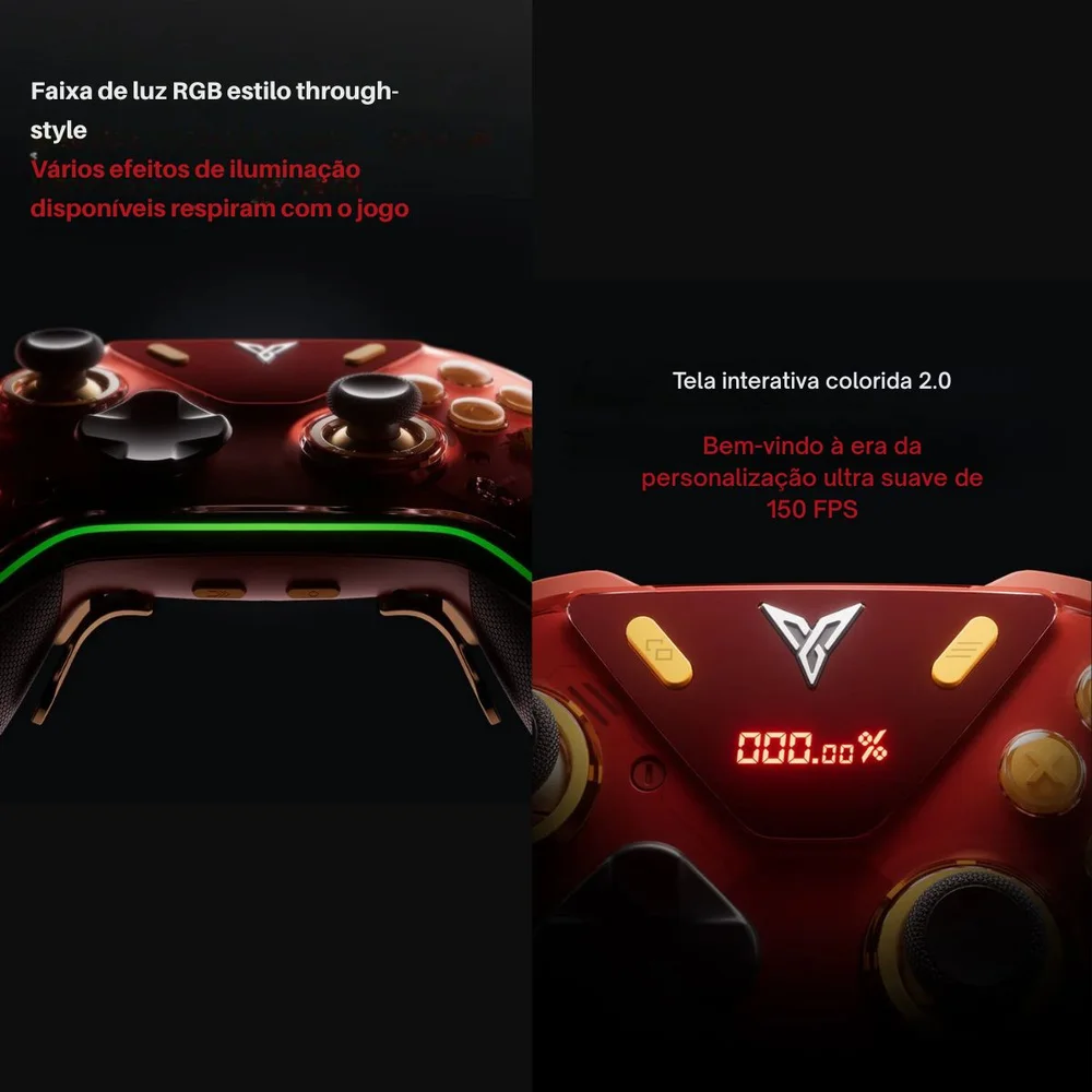 Display Inteligente e RGB Dinâmico: Apresenta uma tela inteligente de 1.5? (150FPS) para animações DIY personalizáveis. A faixa RGB do controle sincroniza-se dinamicamente com a vibração para uma experiência visual envolvente.