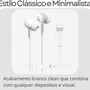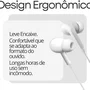 Controles embutidos: Os botões de volume e controle de faixa permitem ajustar o som e navegar pelas músicas diretamente nos fones, sem precisar tirar o celular do bolso.