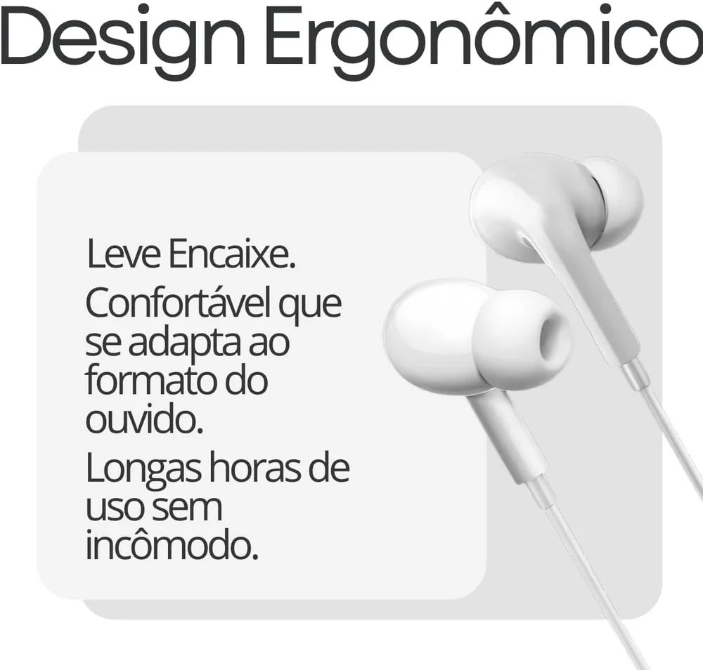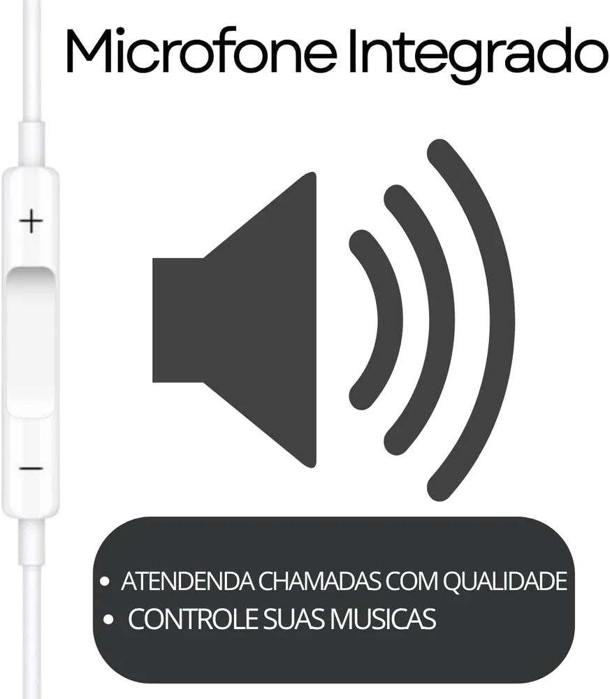 Microfone integrado: Permite realizar chamadas com praticidade e clareza, transformando os fones em um headset completo.