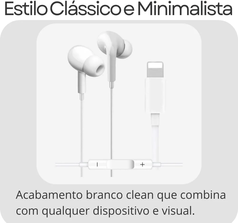Plug and Play: A conexão Compátivel com Lightning simplifica o uso, bastando conectar os fones ao dispositivo para começar a ouvir suas músicas favoritas.