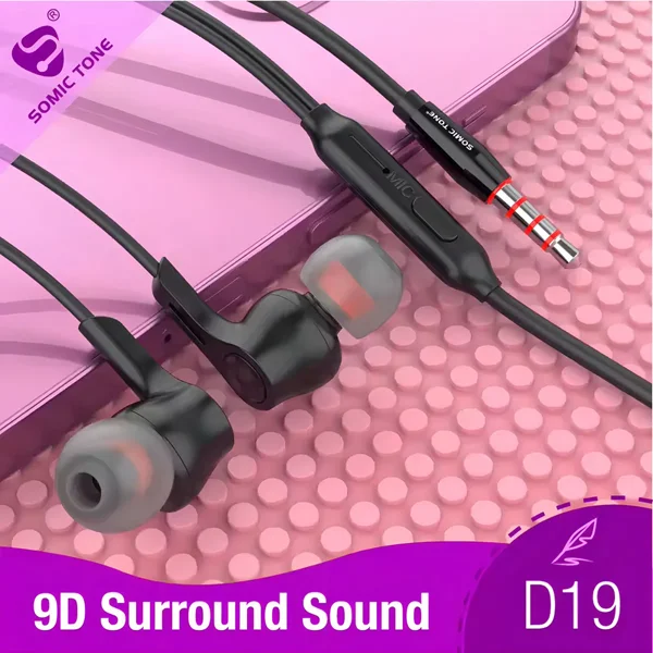 Fone De Ouvido Somic Tone D19 Com Microfone E Super Bass Intra-auricular Conector P2 3.5mm Preto
