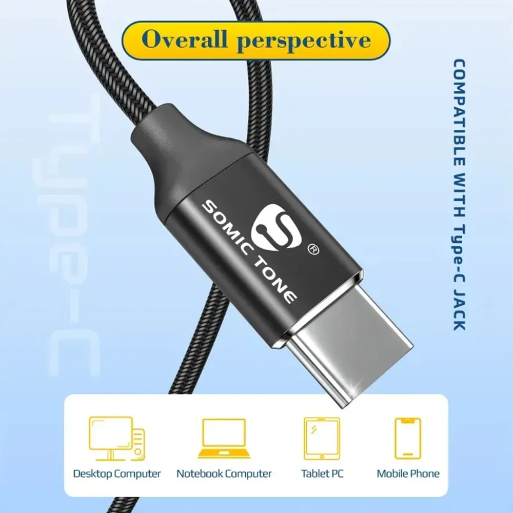 Fone De Ouvido Somic Tone Tn60 Usb-c Com Microfone E Super Bass Reforçado Preto