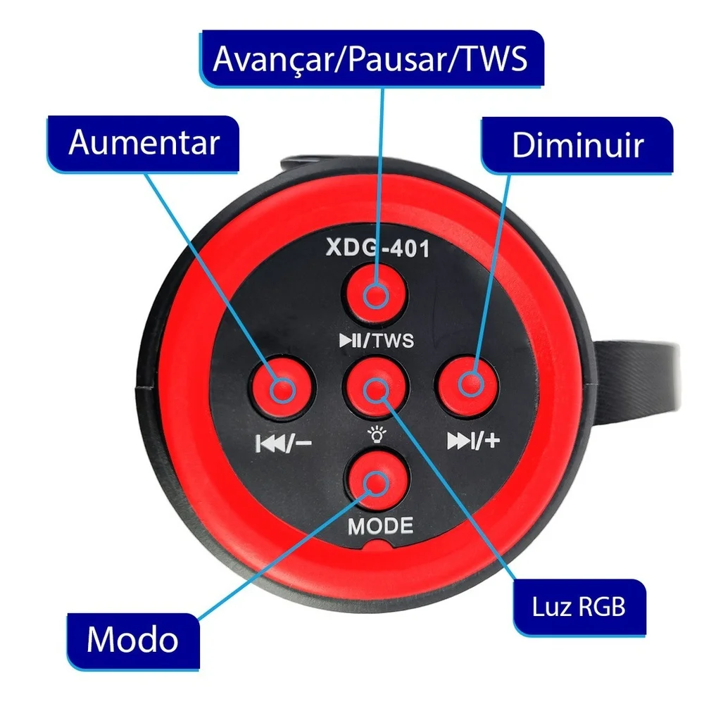 Com a tecnologia **TWS** (True Wireless Stereo), você pode conectar até duas caixas de som XDG-401, ampliando sua diversão e criando um som estéreo real.