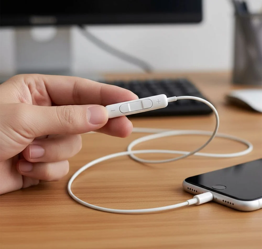 Controles embutidos: Os botões de volume e controle de faixa permitem ajustar o som e navegar pelas músicas diretamente nos fones, sem precisar tirar o celular do bolso.