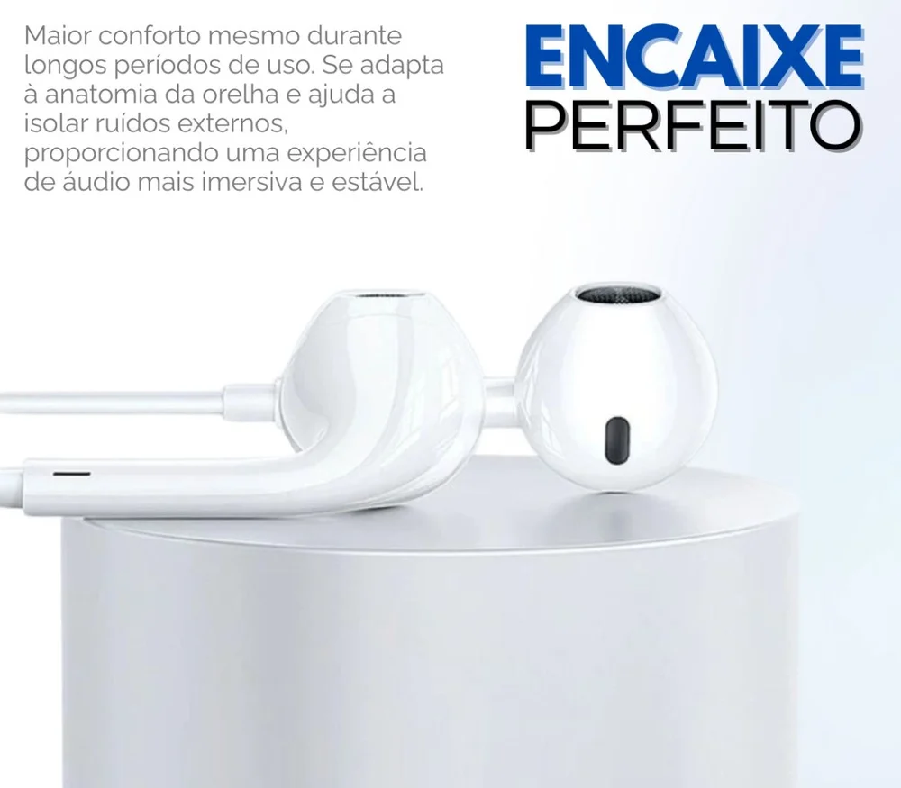 Microfone integrado: Permite realizar chamadas com praticidade e clareza, transformando os fones em um headset completo.