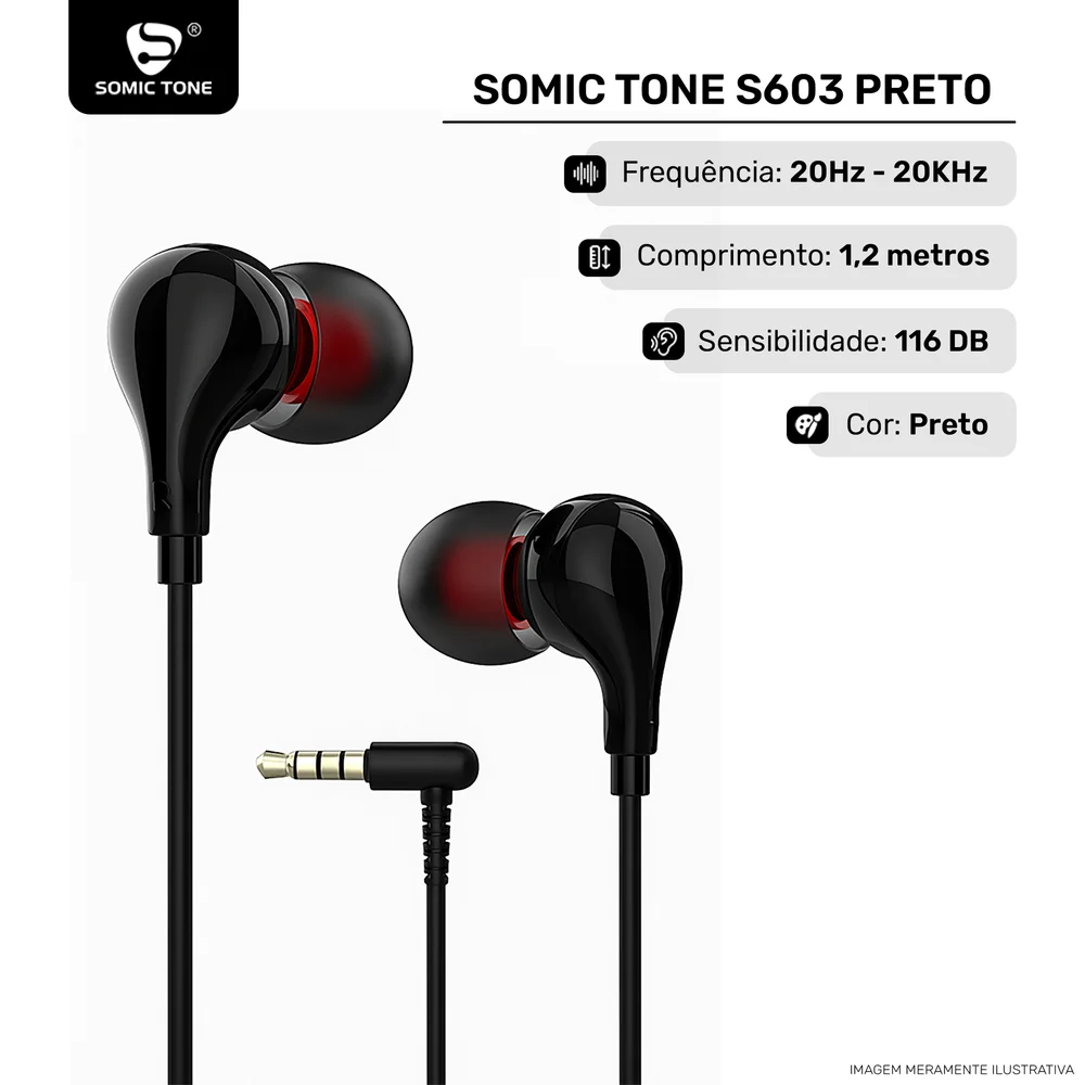 Fone De Ouvido Somic Tone S603 Preto Com Microfone