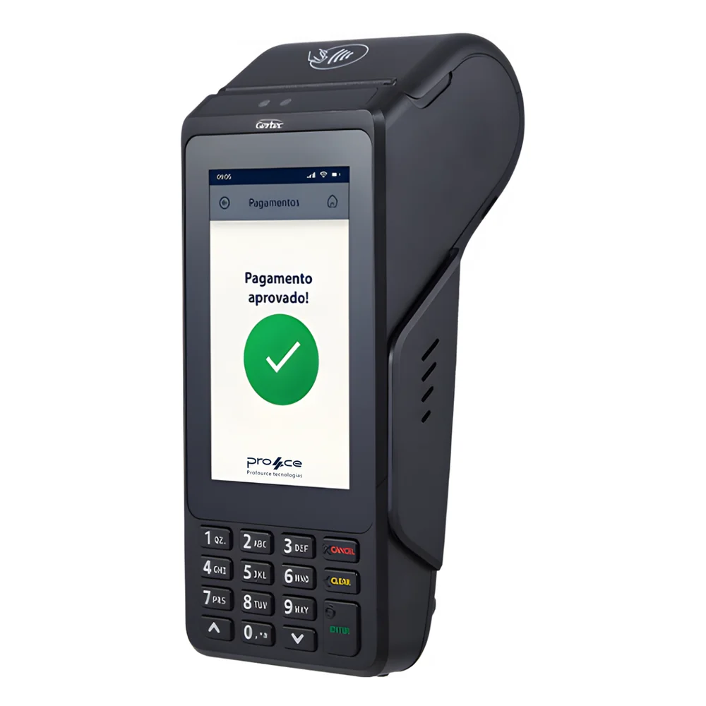 Compatível com cartões magnéticos, com chip e Contactless/NFC, o GPOS760 aceita múltiplas formas de pagamento com total segurança. Sua conectividade Wi-Fi (2,4 GHz e 5 GHz), 2G, 3G e 4G assegura comunicação estável em qualquer ambiente, e a câmera de 2MP amplia as possibilidades de uso em diferentes aplicações. Com impressora térmica integrada de 90 mm/s, a emissão de comprovantes é rápida e precisa. Além disso, a bateria de 2.600 mAh garante longa autonomia, acompanhando o ritmo do seu negócio. Certificado pelos principais padrões de segurança, o GPOS760 é a escolha ideal para quem busca eficiência, mobilidade e confiabilidade em soluções de pagamento.