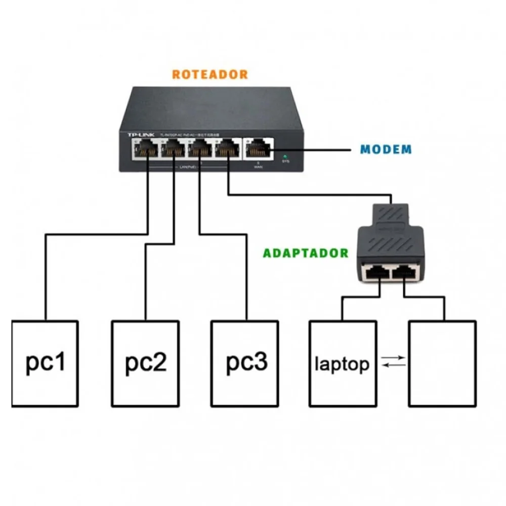 ### **Adaptador T RJ45 - Conexão Eficiente para Compartilhamento de Rede**