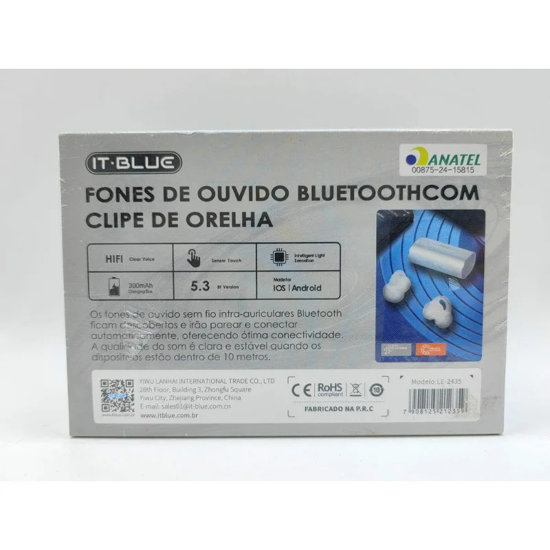 Fone de Ouvido Bluetooth com Clipe de Orelha It-Blue LE-2435 – Estável, Leve e Confortável!