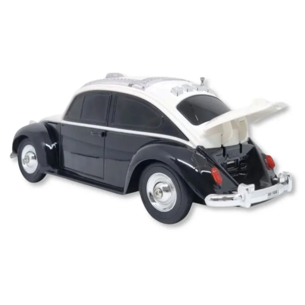 Display Traseiro: Mostra o número da música e o tempo de reprodução, trazendo um toque moderno e funcional. Design Único: Alto-falantes posicionados no teto e no assoalho, garantindo uma experiência sonora imersiva. Rádio FM Estéreo: Com salvamento de estações, sintonize suas emissoras favoritas de forma prática. Estilo Autêntico: Antena no teto e faróis que acendem, replicando o design clássico do Fusca. Conectividade Versátil: Entradas USB para pendrives, cartão Micro SD, fone de ouvido e cabo P2, permitindo conexão com notebooks, PCs, celulares, MP4, entre outros dispositivos. Bateria Interna Recarregável: Inclui bateria interna e suporte para bateria Li-ion, proporcionando maior autonomia. Dimensões Compactas: 24 cm (C) x 10 cm (L) x 8 cm (A), ideal para diversos ambientes.