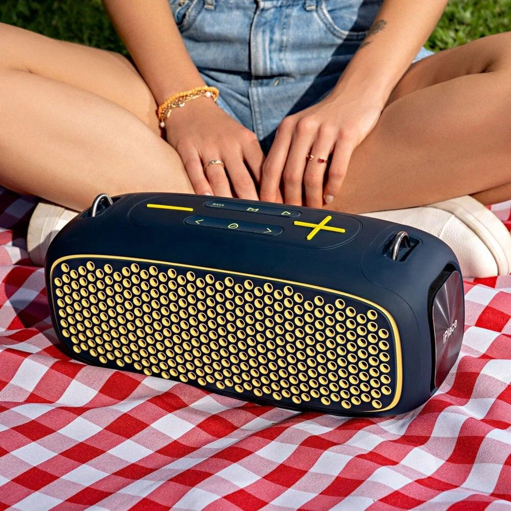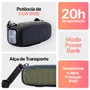 especificações potência: 55w rms resistência a água: ipx6 bluetooth: 5.0+edr, suporte para ios e android distância máxima bluetooth: 10 metros resposta de frequência: 60 hz – 12 khz bateria: lítio 7,4v / 8000 mah tensão de carregamento: dc 5v 2a autonomia bateria: até 20h, conforme utilização* tempo de carregamento: aproximadamente 4h entradas: usb-a, p2 (3,5mm) e micro sd (tf) modo power bank modo chamada (hands free) função tws (conecte duas caixas ao mesmo tempo) 3 equalizações pré-definidas (neutro, grave, médio) indicador de carga da bateria