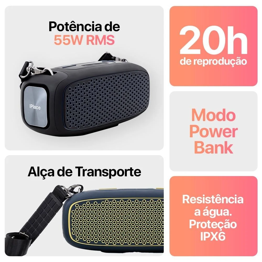 Caixa De Som Energie L55 Iplace, Azul Marinho E Turquesa