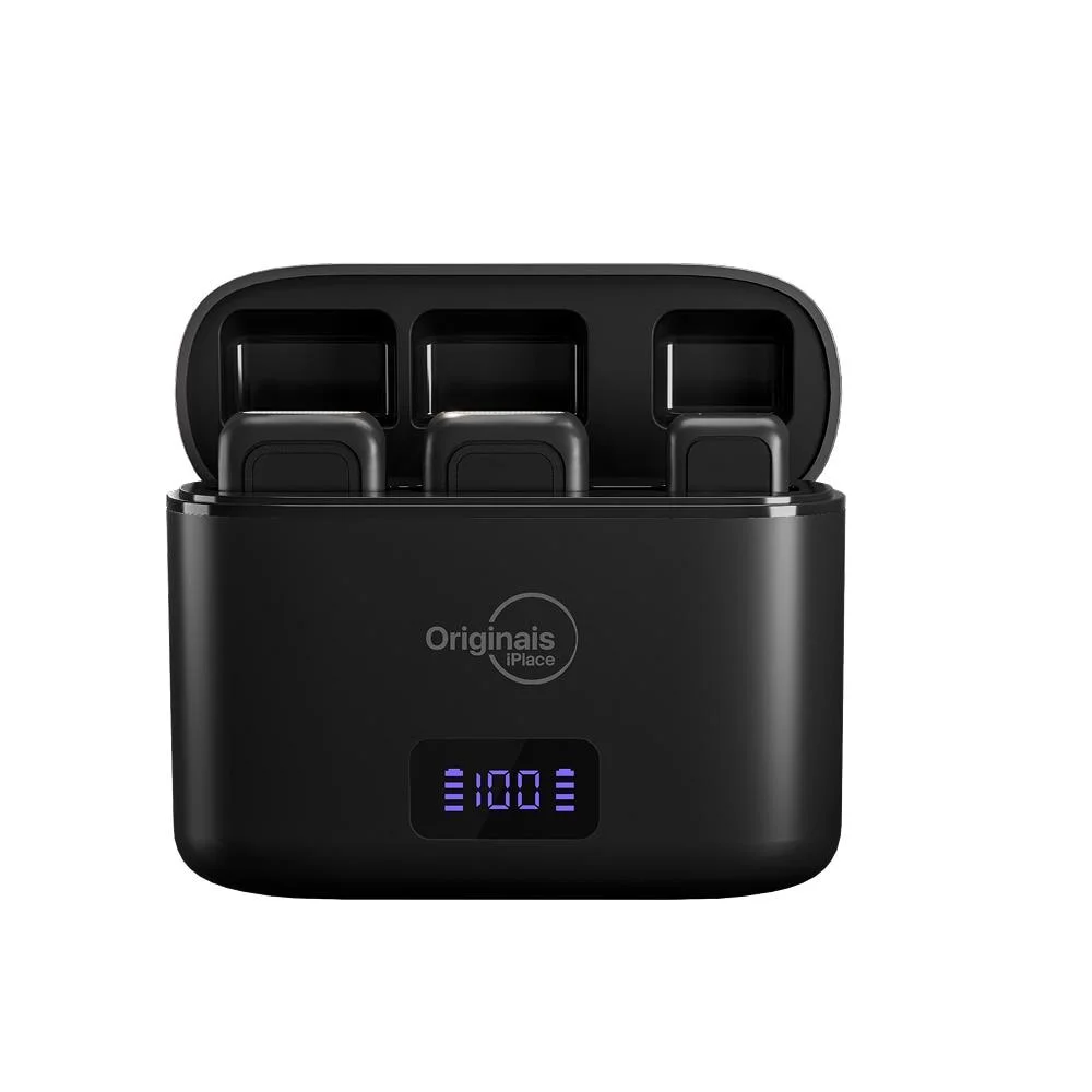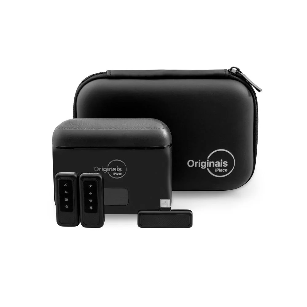 itens inclusos 2 transmissores 1 receptor 2 filtros de vento para microfone 1 fone de ouvido para monitoramento 1 cabo usb-c de carregamento 1 estojo de carregamento 1 manual do usuário