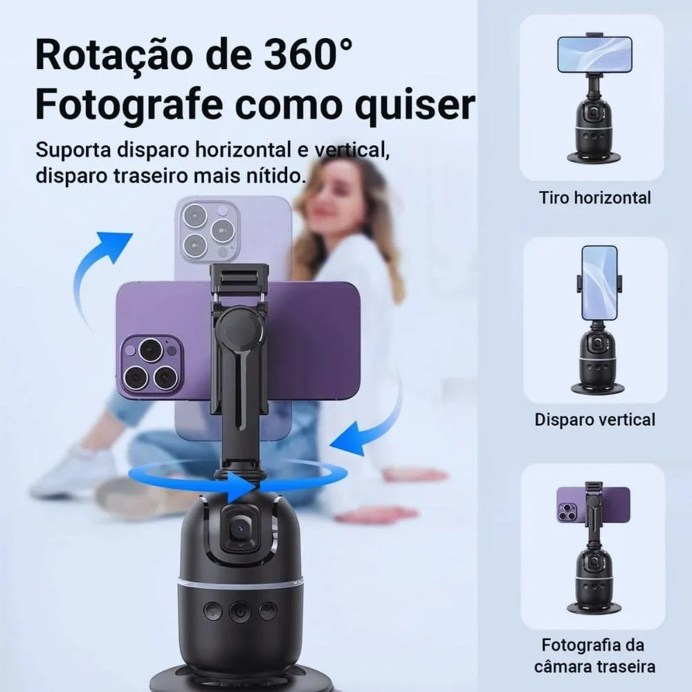 Gimbal Rastreador Facial 360° Automático Inteligente – Filmagens com Liberdade Total