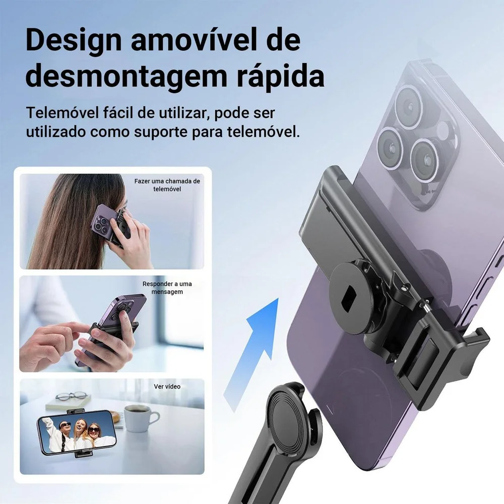 Funciona também com câmeras DSLR e tripés (rosca 1/4”)