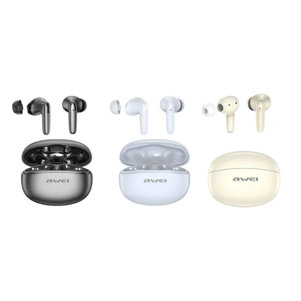 Fone de Ouvido Bluetooth Awei T90 ENC – Com Redução de Ruído e Duplo Encaixe O Awei T90 ENC oferece áudio de alta definição com redução inteligente de ruído, garantindo chamadas nítidas e música envolvente sem interferências. Seu duplo encaixe ergonômico proporciona ajuste seguro e conforto prolongado, ideal para quem usa fone por longas horas. Com certificação IPX6, os fones resistem à água e suor, sendo perfeitos para treinos, atividades ao ar livre ou deslocamentos urbanos. A bateria duradoura oferece até 20 horas de reprodução contínua, garantindo liberdade para curtir músicas, podcasts e chamadas durante todo o dia. Compatível com laptops, smartphones e outros dispositivos via Bluetooth 6.0, o T90 proporciona pareamento rápido e conexão estável com alta eficiência energética. Produto homologado conforme as normas vigentes no Brasil.