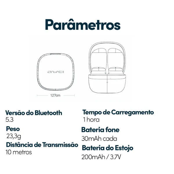 O Awei T78 oferece áudio potente e isolamento acústico eficiente, garantindo uma experiência sonora envolvente em músicas, chamadas e conteúdos multimídia. Seu design intra-auricular compacto e ergonômico proporciona encaixe confortável mesmo durante longas sessões de uso.