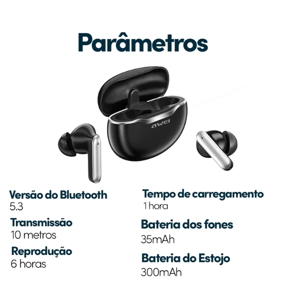 O Awei T50 transforma sua experiência sonora, tornando cada detalhe mais vívido. Com design intra-auricular TWS, oferece total liberdade e isolamento acústico, ideal para jogos, música ou chamadas. A redução de ruído garante áudio limpo e envolvente, enquanto o microfone integrado proporciona comunicação nítida em videoconferências ou partidas online. O controle por toque coloca funções essenciais ao alcance dos dedos, tornando o uso intuitivo e prático. Projetado para quem valoriza desempenho, conforto e estilo, o Awei T50 combina tecnologia avançada com liberdade de movimento, perfeito para o dia a dia ou momentos de lazer. Produto homologado conforme as normas vigentes no Brasil.