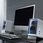 • Design com suportes de alumínio Os suportes inclusos reduzem reflexos de som da mesa e possuem ângulo de 10 graus, direcionando o áudio diretamente ao nível dos ouvidos.