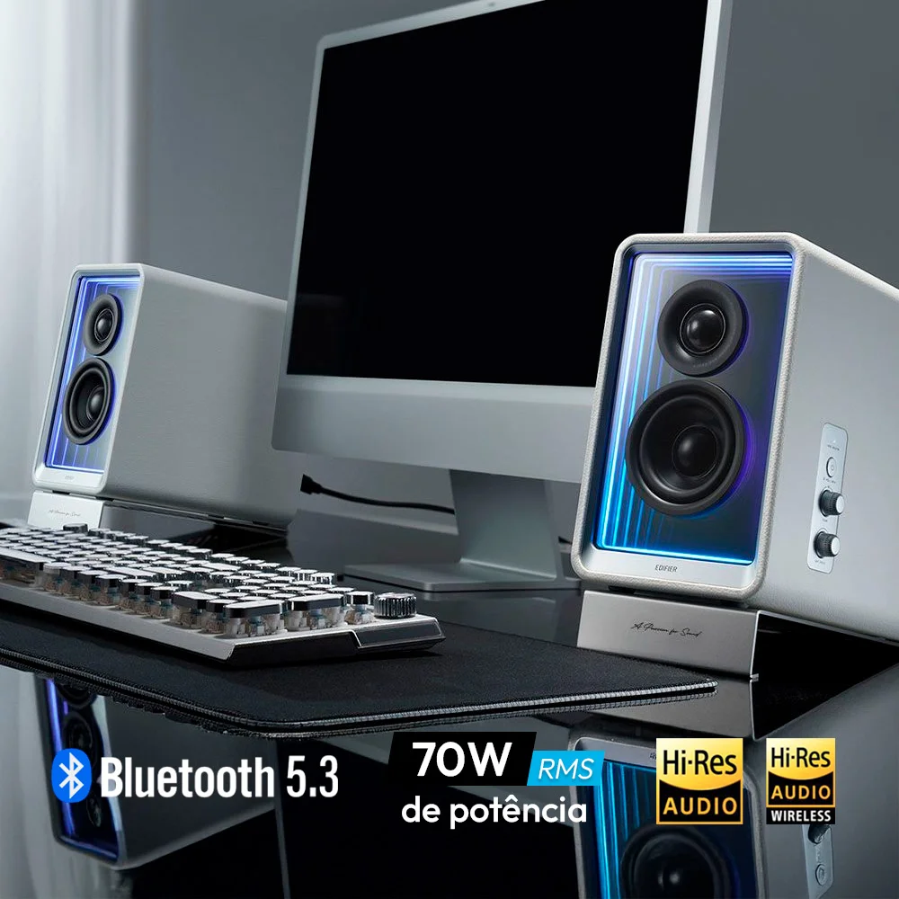 Caixa de som Bluetooth, 70W RMS, Design Minimalista, Painel 3D frontal, Hi-Res, Bivolt - QR65 EDIFIER Branca