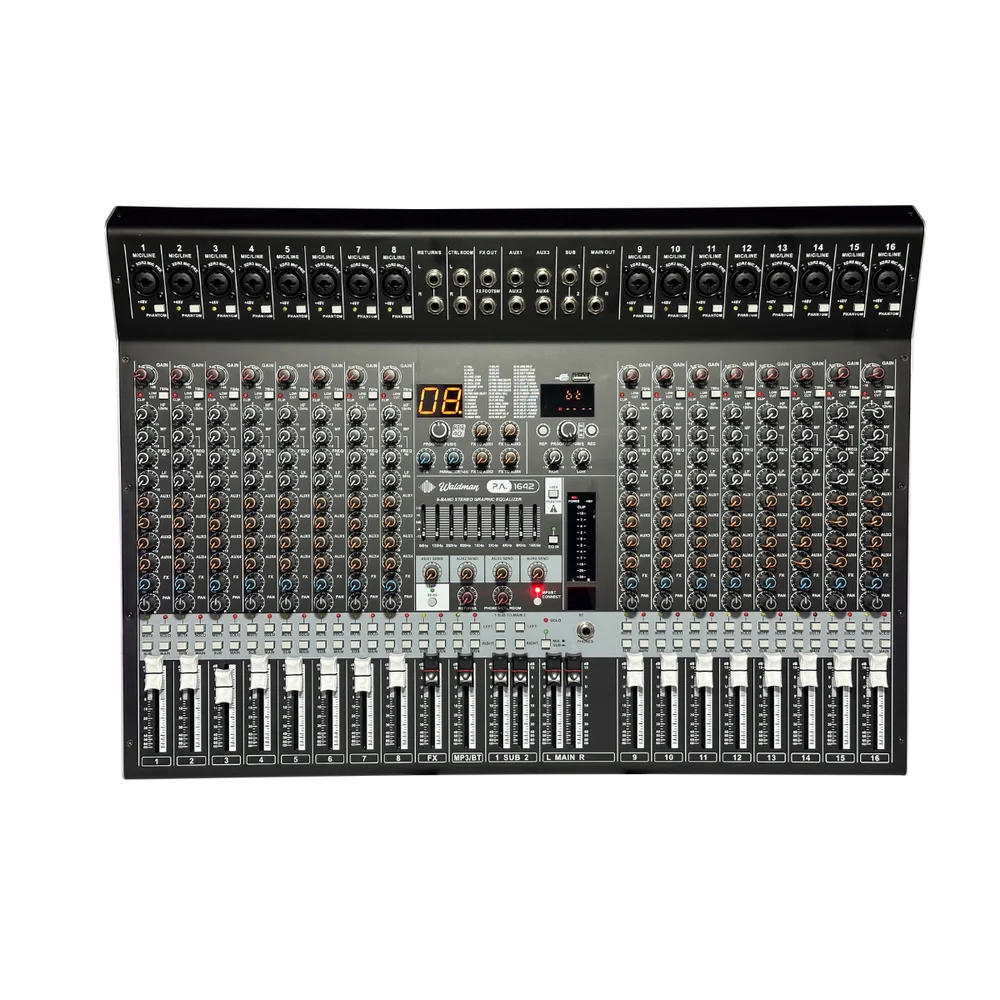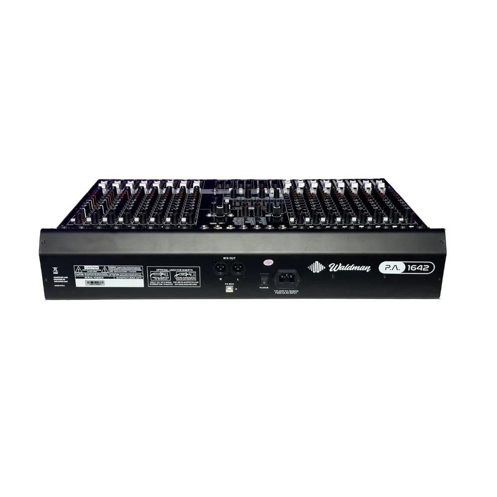 A Waldman PA-1642 é uma mesa de som profissional desenvolvida para oferecer máxima qualidade de áudio e versatilidade em estúdios, igrejas, eventos e apresentações ao vivo. Com 16 canais de entrada, ela permite conectar diversos instrumentos e microfones simultaneamente, garantindo um controle completo e preciso sobre cada detalhe do som.