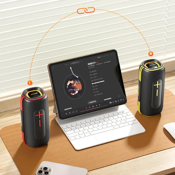 A Awei KA5 combina som potente, estilo vibrante e resistência em um design moderno e portátil. Com 20W de potência (10W x2), oferece áudio limpo e envolvente para músicas, chamadas e festas. Sua iluminação RGB cria um ambiente dinâmico, enquanto a resistência IPX5 garante proteção contra respingos, tornando-a ideal para uso ao ar livre. A bateria de 2400mAh proporciona até 8h de reprodução contínua, e a função TWS (True Wireless Stereo) permite emparelhar duas unidades para uma experiência estéreo imersiva. Destaques do Produto: 20W de Potência – som nítido e equilibrado Iluminação RGB – estilo moderno e ambiente vibrante Resistência IPX5 – proteção contra respingos de água Bluetooth 5.3 Estável – conexão rápida e segura Função TWS – combine duas caixas para áudio estéreo Bateria de Longa Duração – até 8h de música sem interrupções
