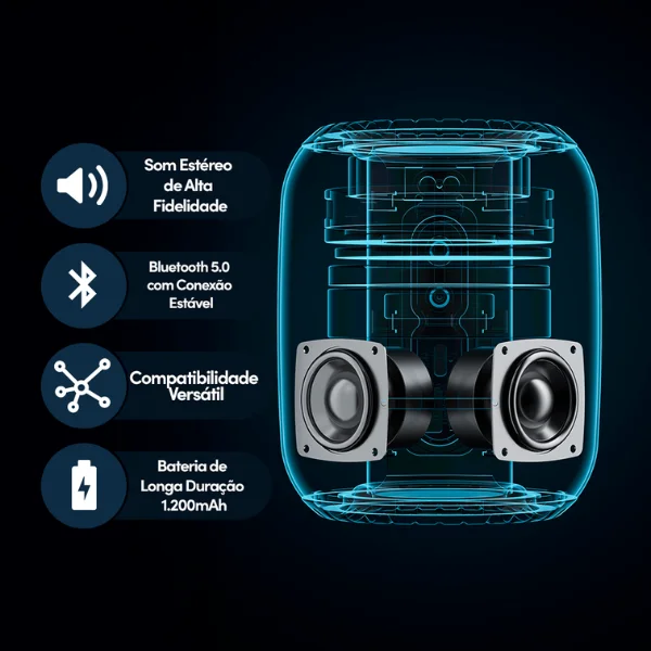 Tecnologia TWS – emparelhe duas caixas para som estéreo real