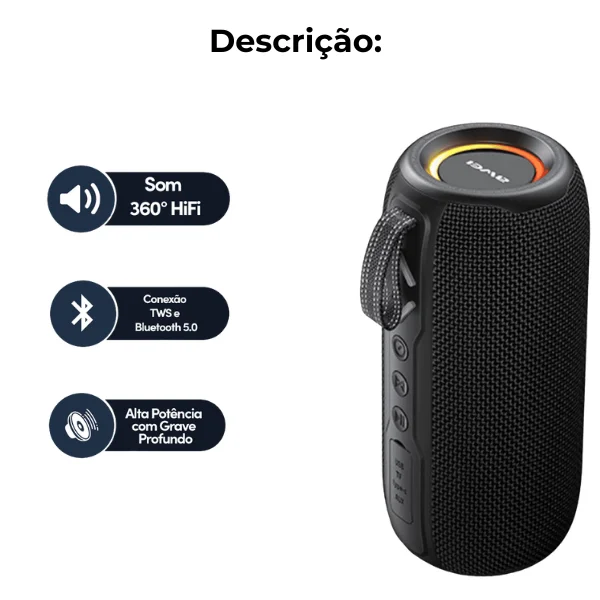 A Awei Y788 oferece uma experiência sonora premium com 20W RMS (10W x2) de potência, garantindo áudio estéreo limpo e envolvente. Com a função TWS, é possível emparelhar duas unidades e criar um palco sonoro ainda mais imersivo para festas, treinos ou encontros.
