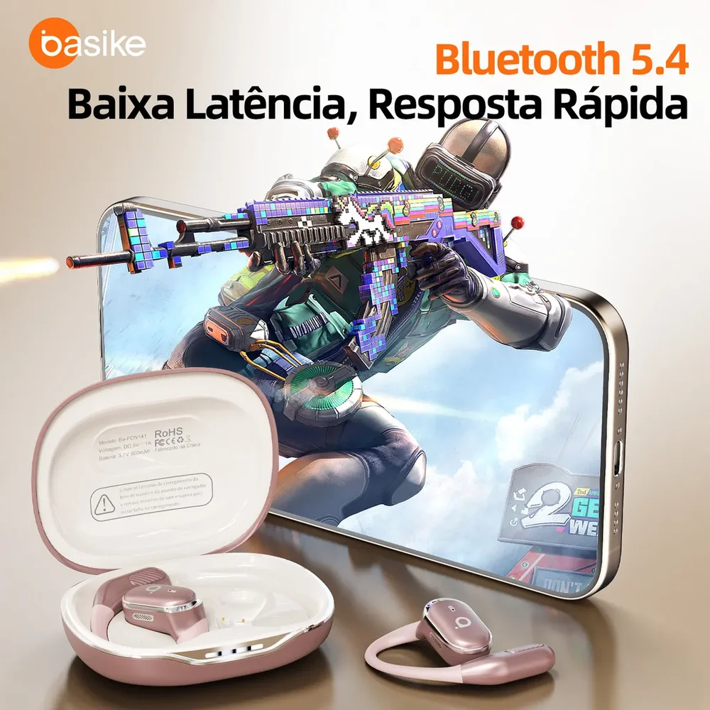 Os fones de ouvido sem fio contam com tecnologia Bluetooth 5.4 avançada, oferecendo velocidade de transmissão 3 vezes mais rápida, conexão estável, baixo consumo de energia e áudio com latência ultrabaixa. Após o primeiro pareamento, os fones conectam-se automaticamente ao serem retirados do estojo de carregamento.