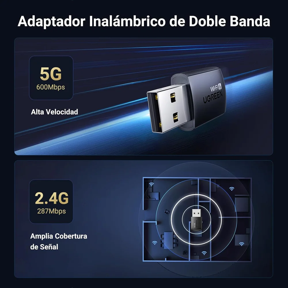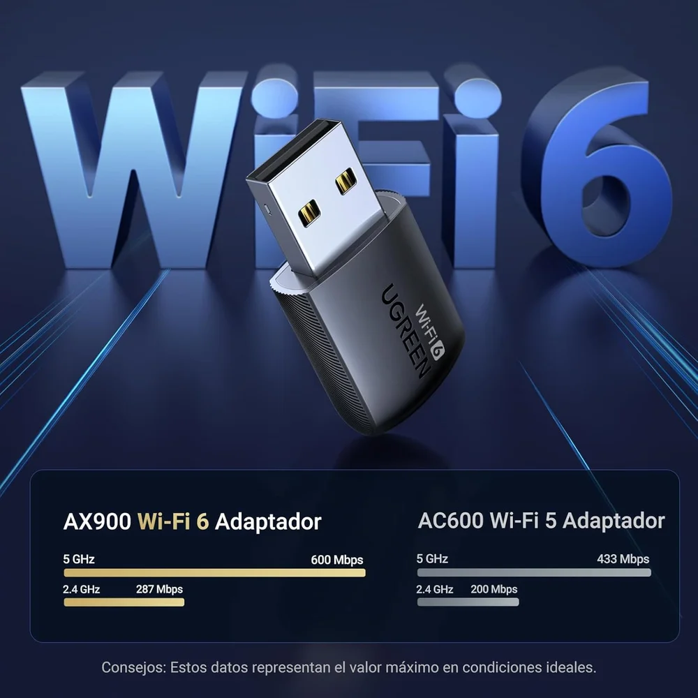 Adaptador Usb 3.0 Ugreen Wifi 6 Ax900 Mbps, Wi-fi Dual-band (5 Ghz/2,4 Ghz), Driver Integrado,