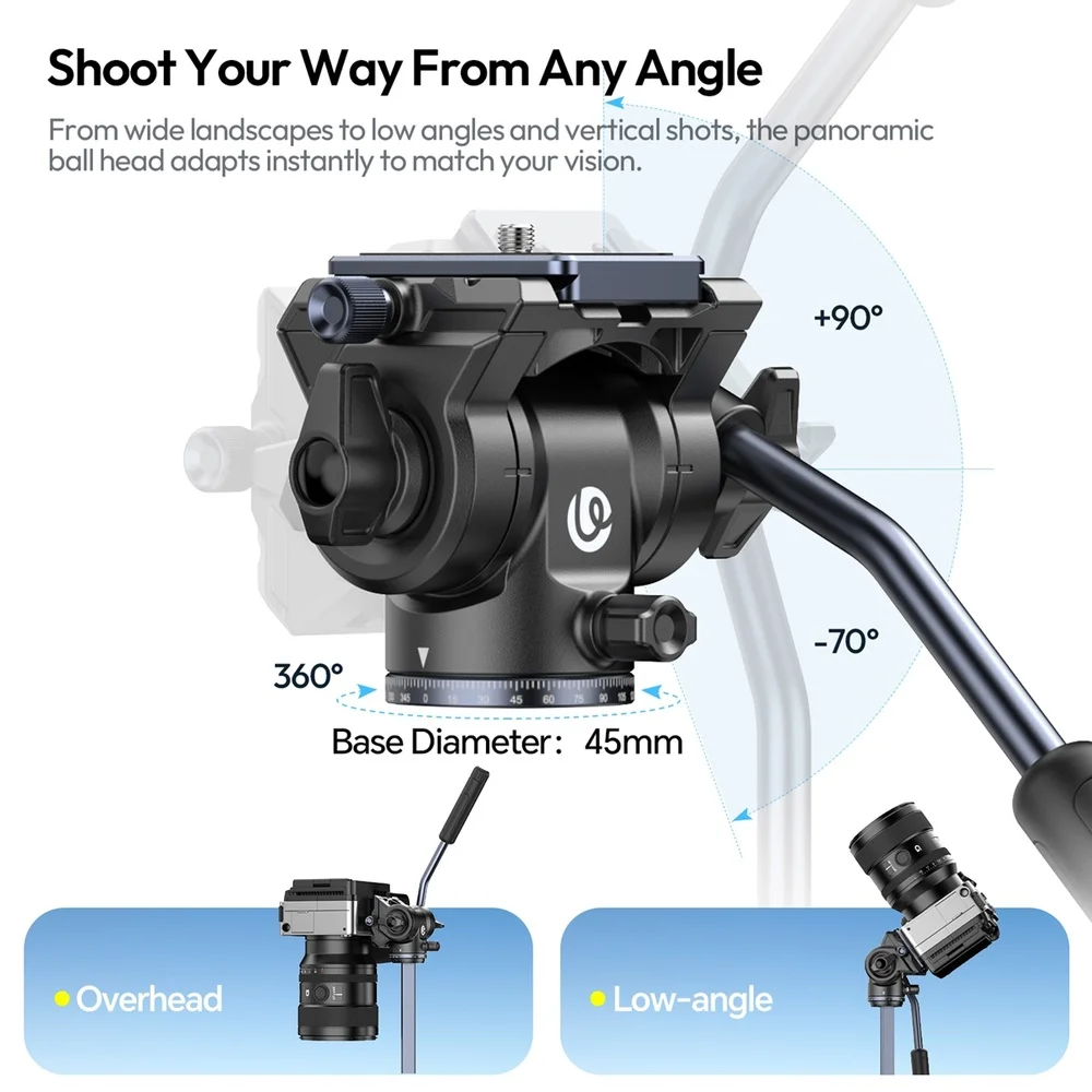 2. Cabeça Fluida Com Rotação e Inclinação 360?: O grande diferencial é a Cabeça Fluida, que oferece movimentos suaves e controlados. Com Rotação de 360? e Inclinação Ajustável, é perfeita para capturar fotos dinâmicas e transições de vídeo profissionais sem trepidação.